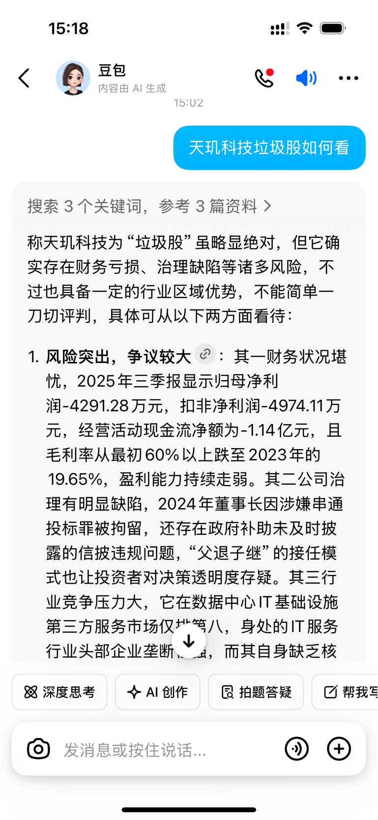 $天玑科技(SZ300245)$ 连豆包都说是垃圾股
