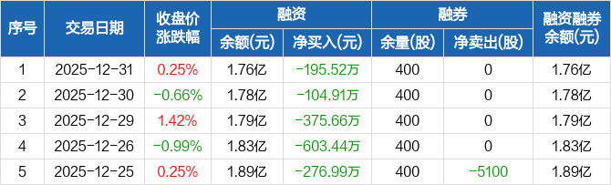 天玑科技:融资余额1.76亿元,创近一年新低(12-31)