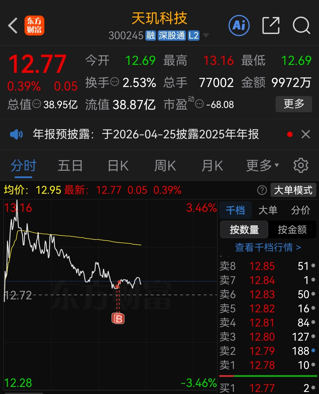 $天玑科技(SZ300245)$ 这两天下托上压,起涨前兆,买了!