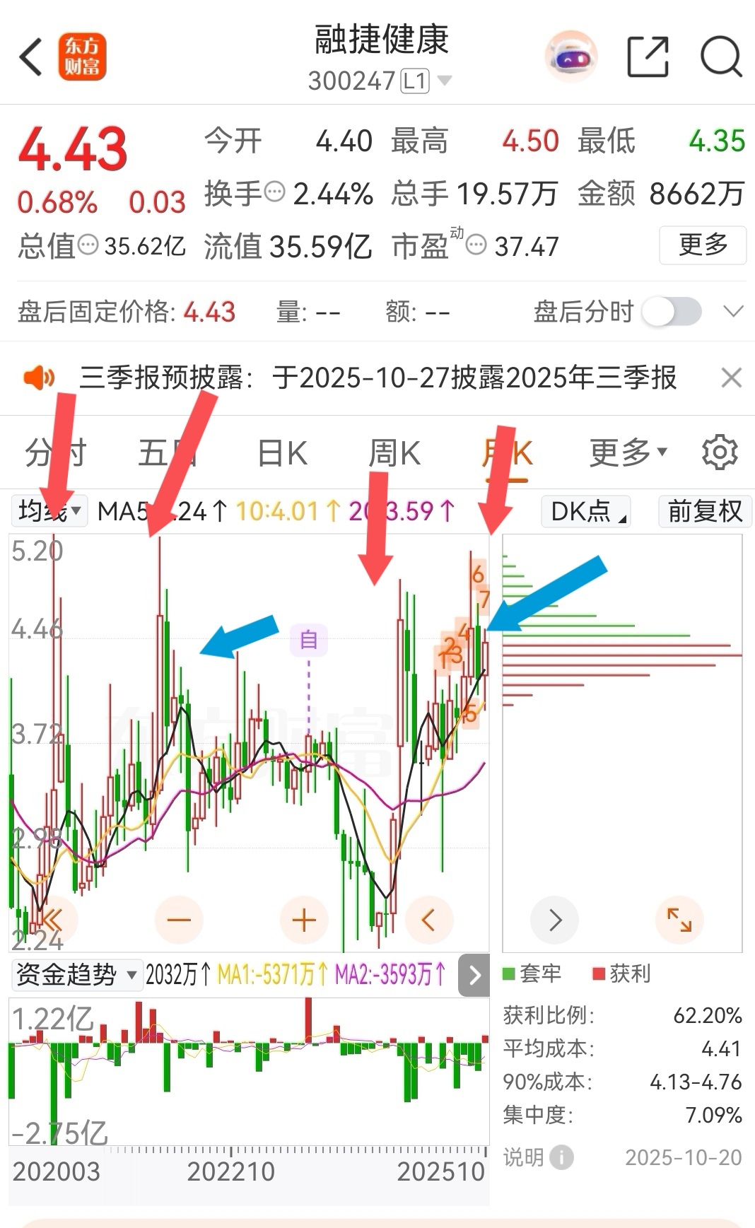 $融捷健康(SZ300247)$ 牛市已经尾声,融捷健康反弹到位,今天创业板大涨2%多,融捷健康已经涨不动,和上一轮牛市一模一样,月线形成双头,月线和2020-2021年3750点那轮一模一样走势。