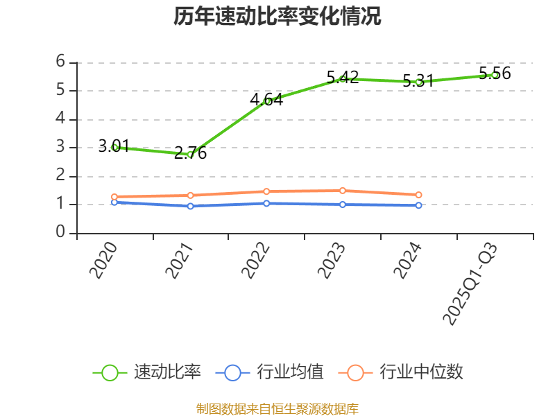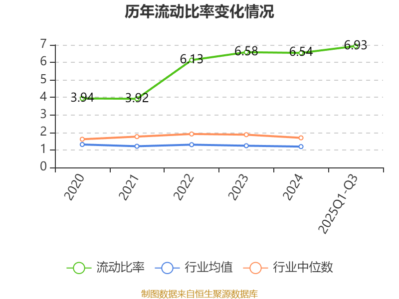 2025年前三季度,公司流动比率为6.93,速动比率为5.56。