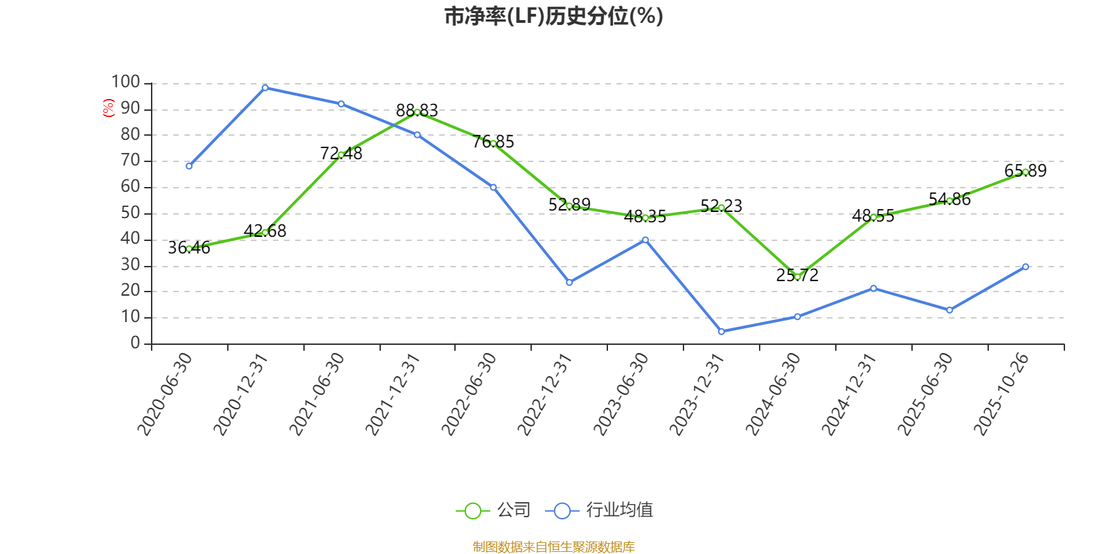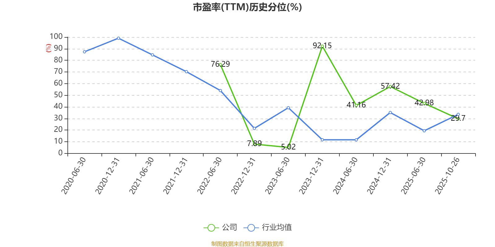 市盈率、市净率为负时,不显示当期分位数,会导致折线图中断。