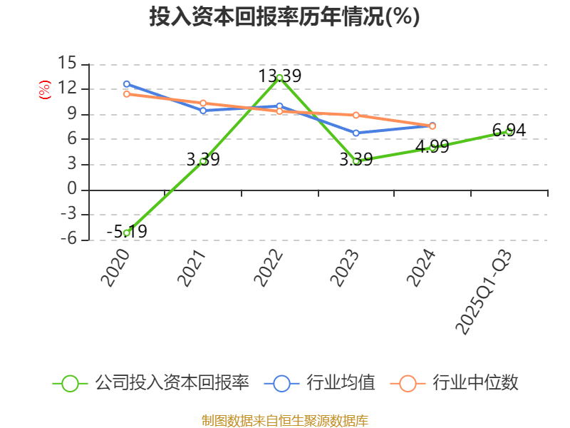 盈利能力方面, 2025年前三季度公司加权平均净资产收益率为6.05%,同比上升2.53个百分点。公司2025年前三季度投入资本回报率为6.94%,较上年同期上升2.97个百分点。