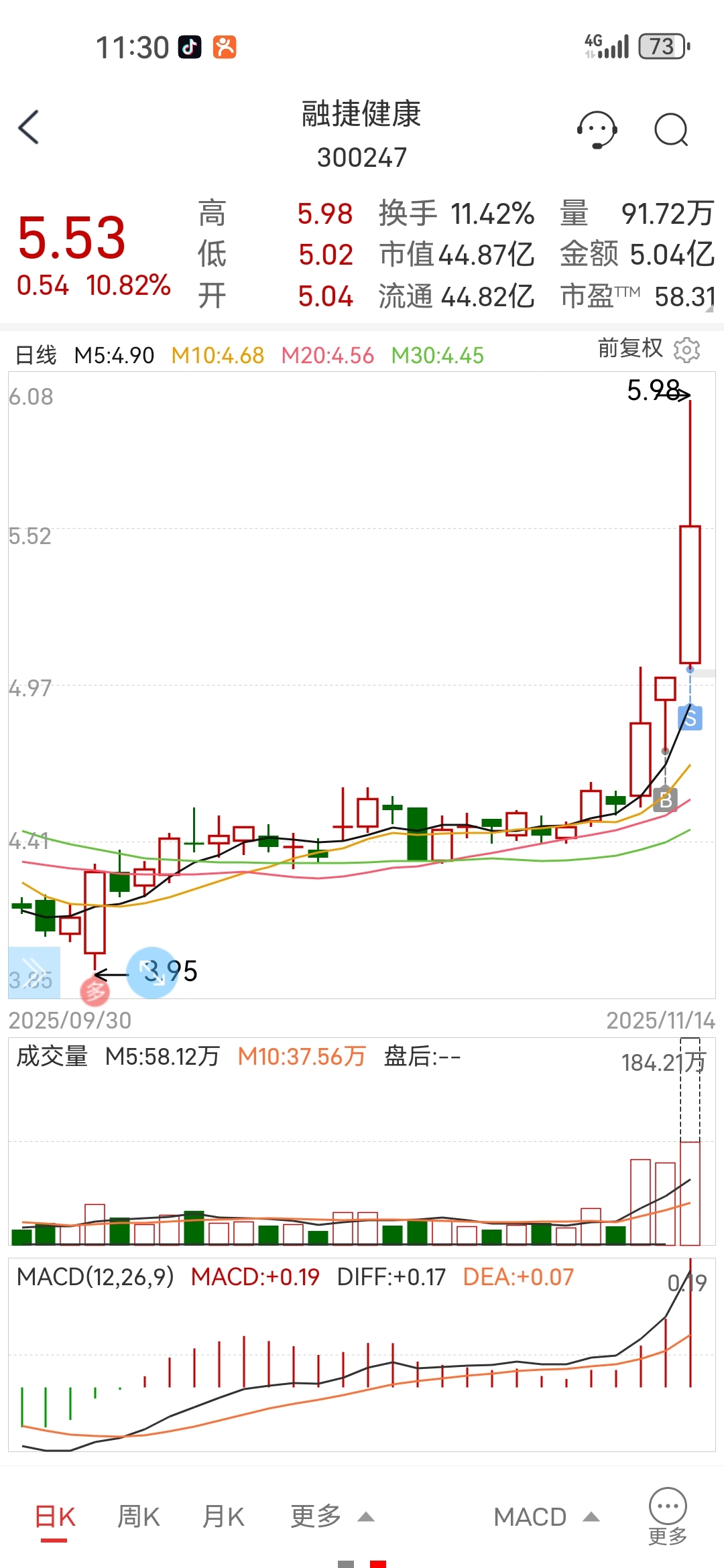 $融捷健康(SZ300247)$ 弄了个一夜情,满足……!有做到一夜情套利2%的高概率模型,继续努力……。