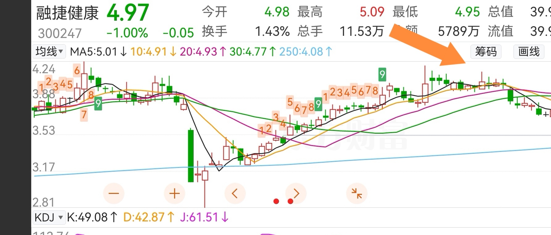 $融捷健康(SZ300247)$ 多么熟悉的融捷健康破位之前的走势,破位挖大坑,才可以买进。图片上这跟阳当时跟风信隆健康,箭头位置都是当时组合图形,破位前走势,和现在跟风华人健康后如出一辙