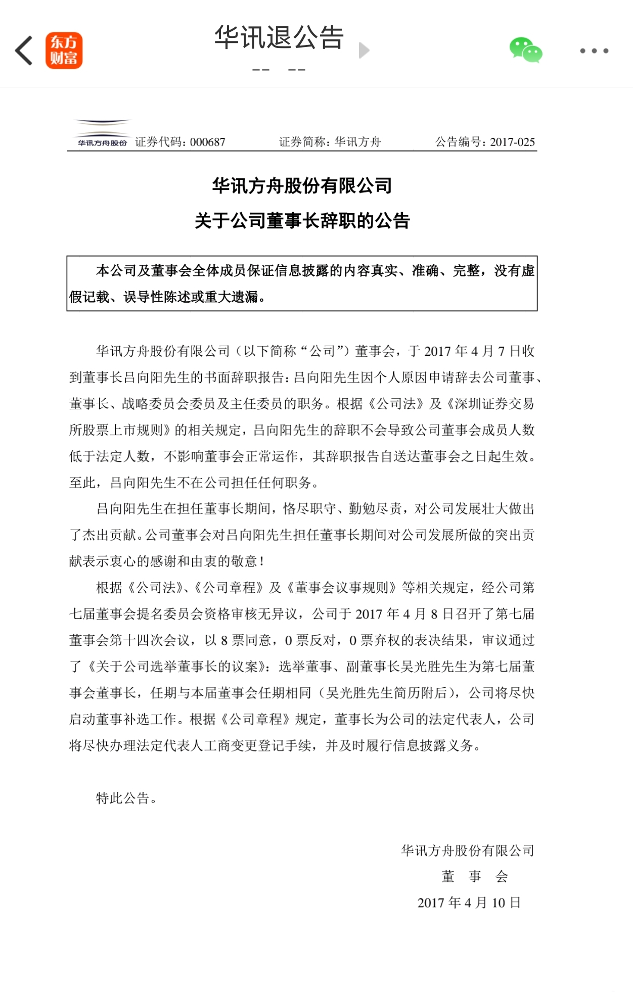 吕向阳第一家公司华讯方舟在吕向阳17年离职后一年造假被查,后退市。吕向阳的股票现