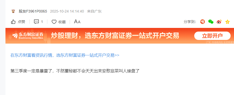 温馨提示: 1.根据《证券法》规定,禁止编造、传播虚假信息或者误导性信息,扰乱证券市场;2.用户在本社区发表的所有资料、言论等仅代表个人观点,与本网站立场无关,不对您构成任何投资建议。用户应基于自己的独立判断,自行决定证券投资并承担相应风险。《东方财富社区管理规定》
