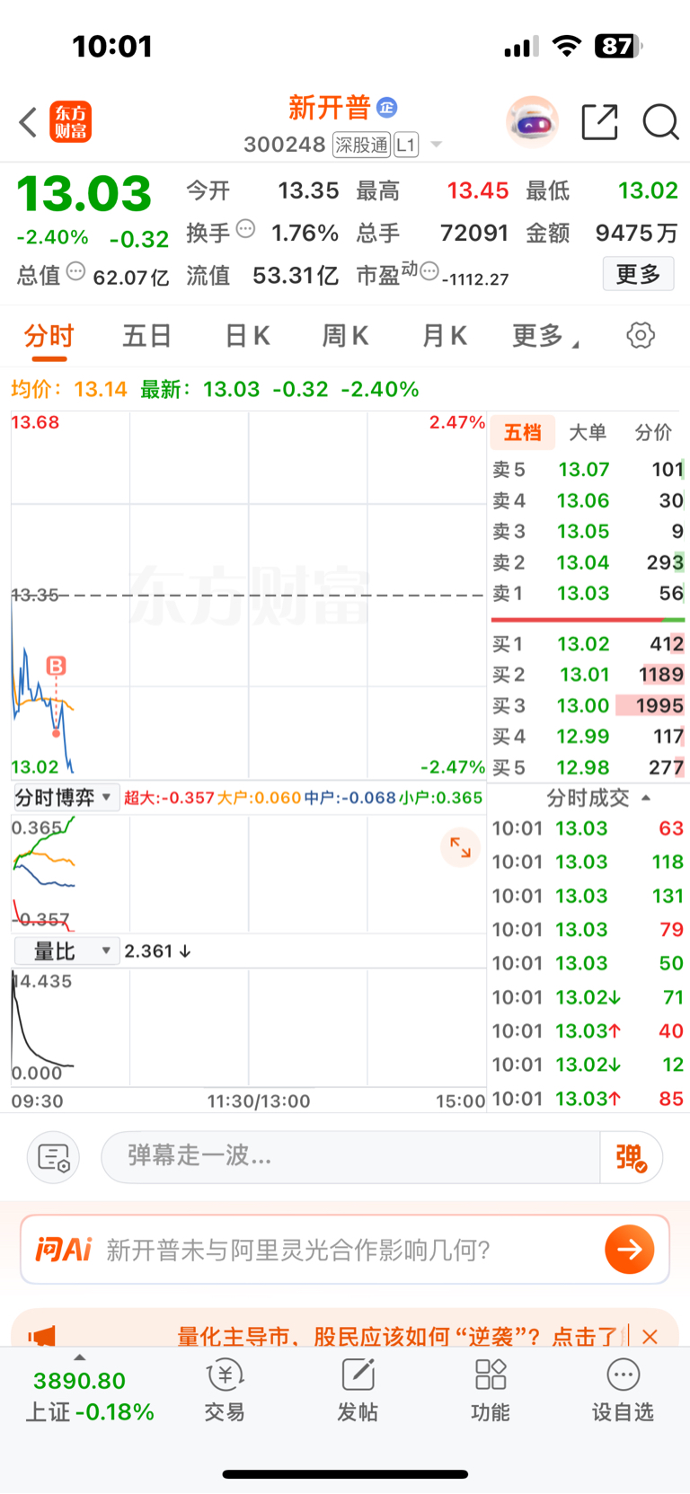 $新开普(SZ300248)$ 没管住手,补早了,本来想等跌倒12.9左右买,实在是忍不住啊!