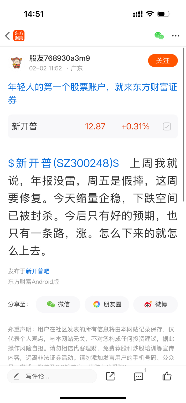 温馨提示: 1.根据《证券法》规定,禁止编造、传播虚假信息或者误导性信息,扰乱证券市场;2.用户在本社区发表的所有资料、言论等仅代表个人观点,与本网站立场无关,不对您构成任何投资建议。用户应基于自己的独立判断,自行决定证券投资并承担相应风险。《东方财富社区管理规定》