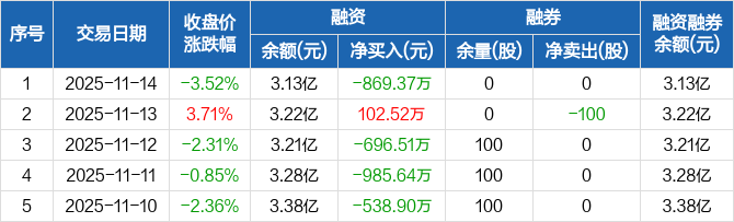 依米康:融资净偿还869.37万元,融资余额3.13亿元(11-14)