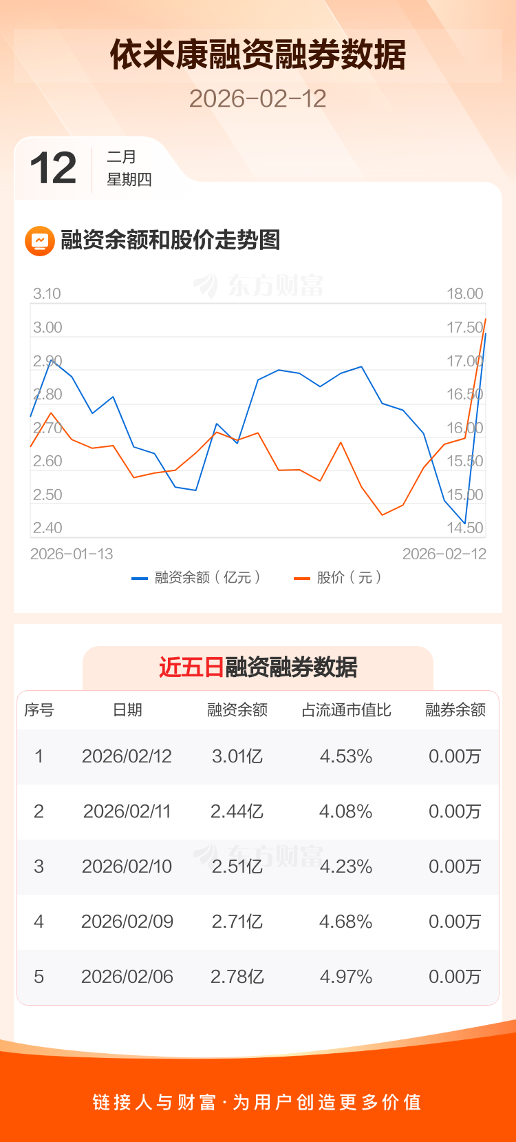 交易所最新数据显示,依米康于2026年2月12日获融资买入2.07亿元,融资偿还1.50亿元,当日融资净买入5704.03万元。目前,该股融资余额3.01亿,占流通市值比例为4.53%。