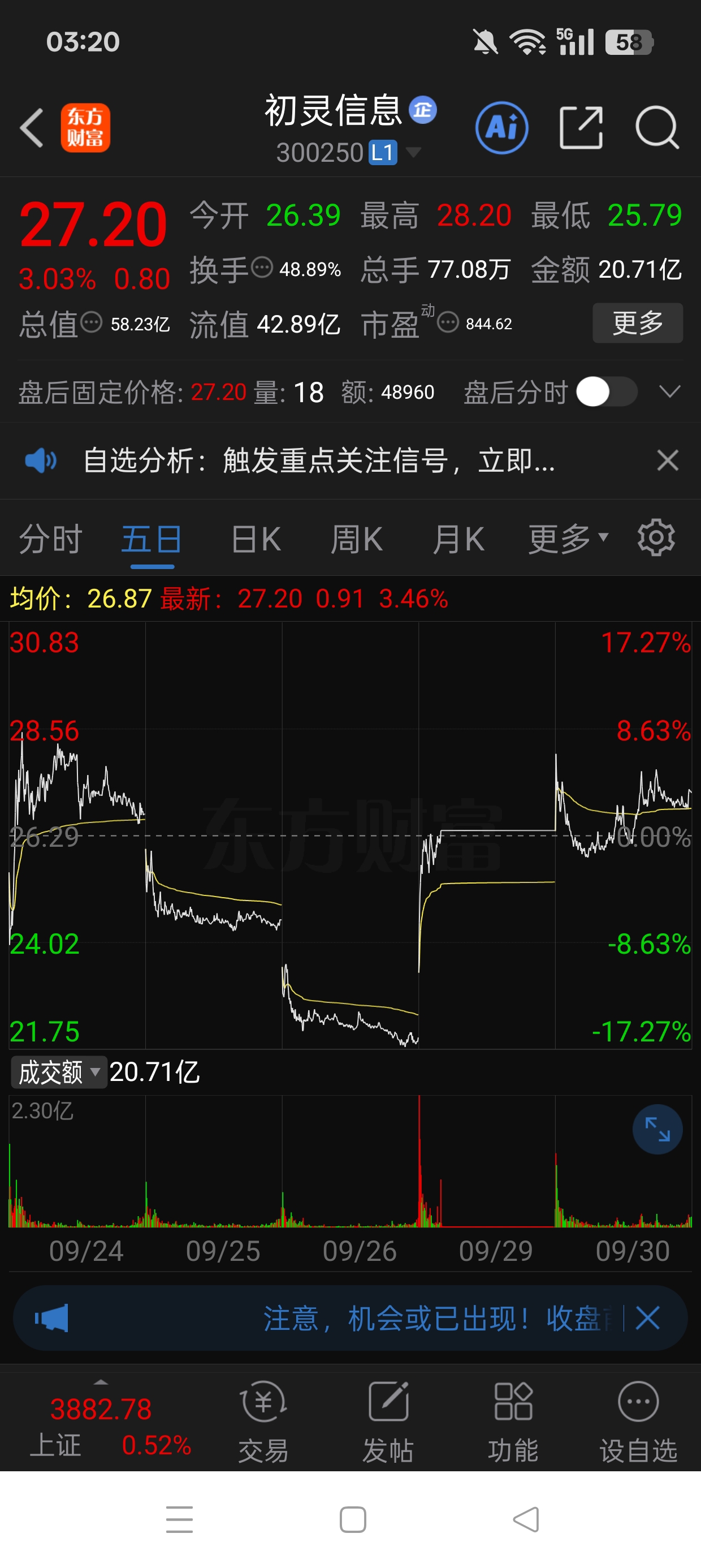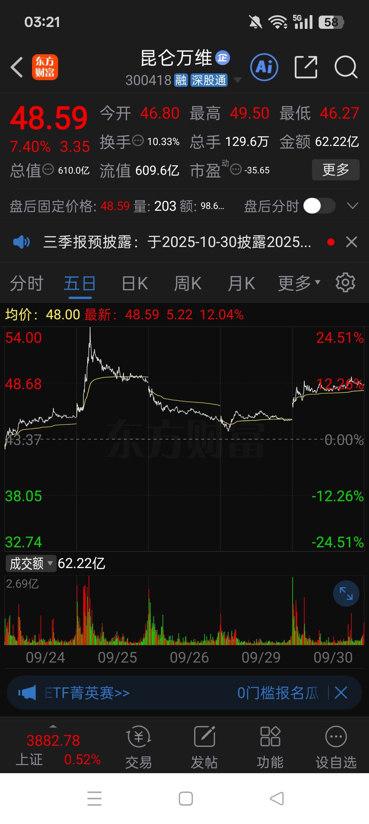 五日,没涨过昆仑万维,节后还要补涨。初灵信息投资30亿,搞算力,而且市场辨识度是