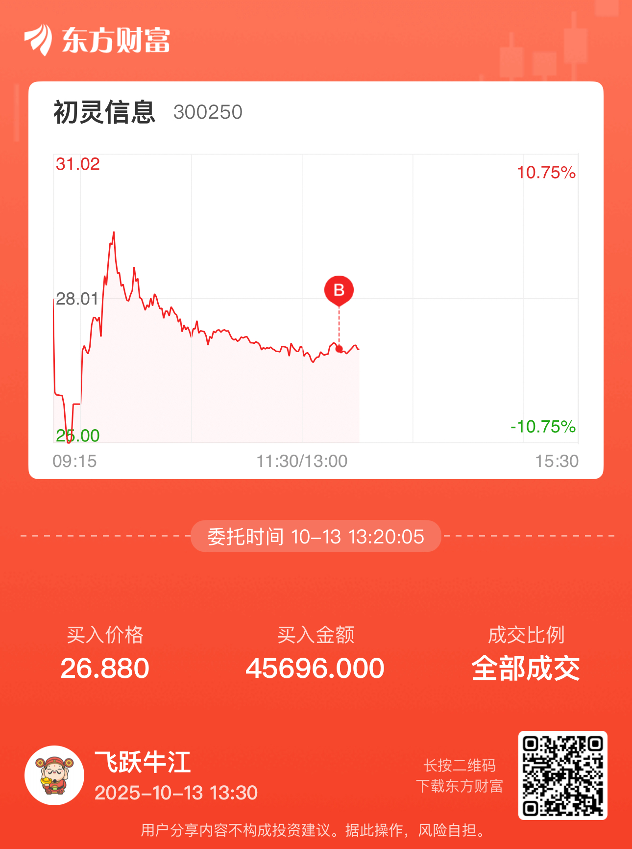 温馨提示: 1.根据《证券法》规定,禁止编造、传播虚假信息或者误导性信息,扰乱证券市场;2.用户在本社区发表的所有资料、言论等仅代表个人观点,与本网站立场无关,不对您构成任何投资建议。用户应基于自己的独立判断,自行决定证券投资并承担相应风险。《东方财富社区管理规定》