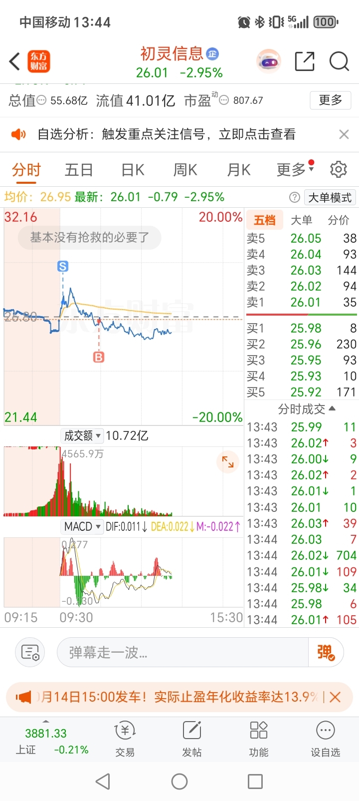 $初灵信息(SZ300250)$ 小T一下,剩下的交给时间
