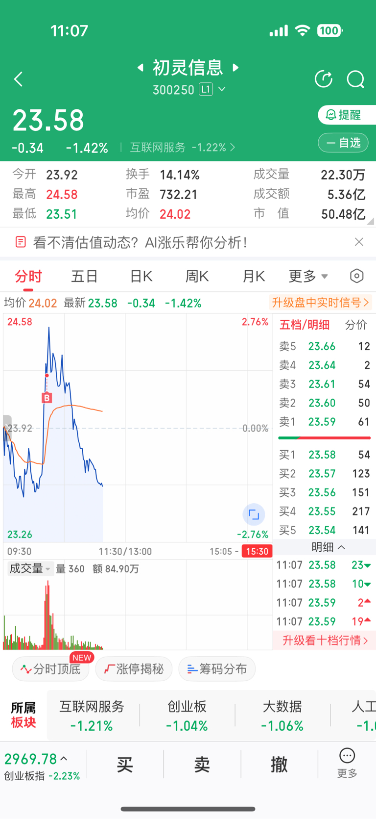 $初灵信息(SZ300250)$ 滑丝了,一买就套……