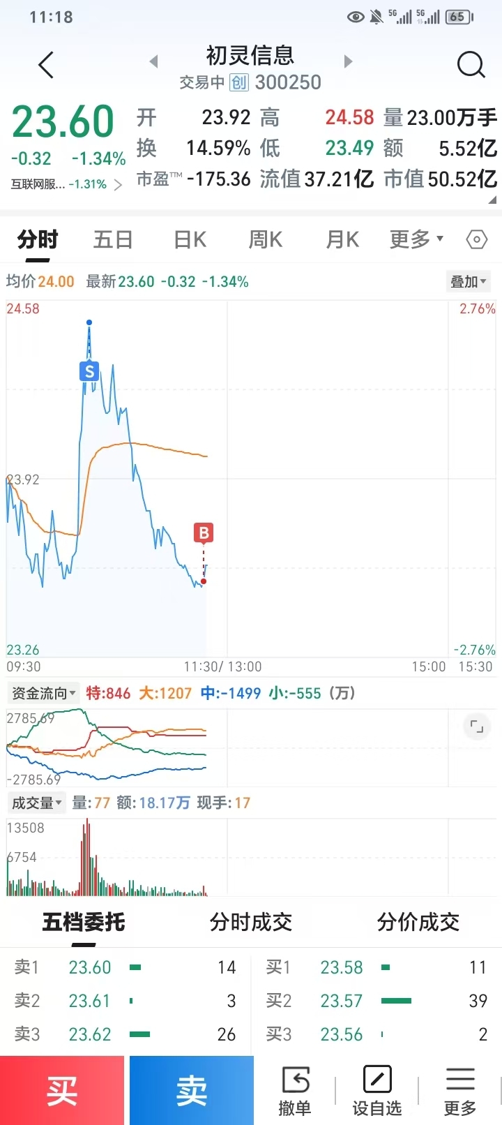 $初灵信息(SZ300250)$ 昨天23.8进的,今天T一波,这操作还可以不