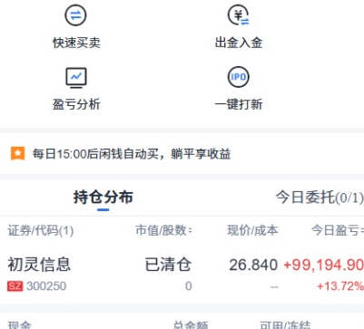$初灵信息(SZ300250)$ 前天差不多最高位清仓 今日必须满上 #强势机会# 看涨#实盘记录#