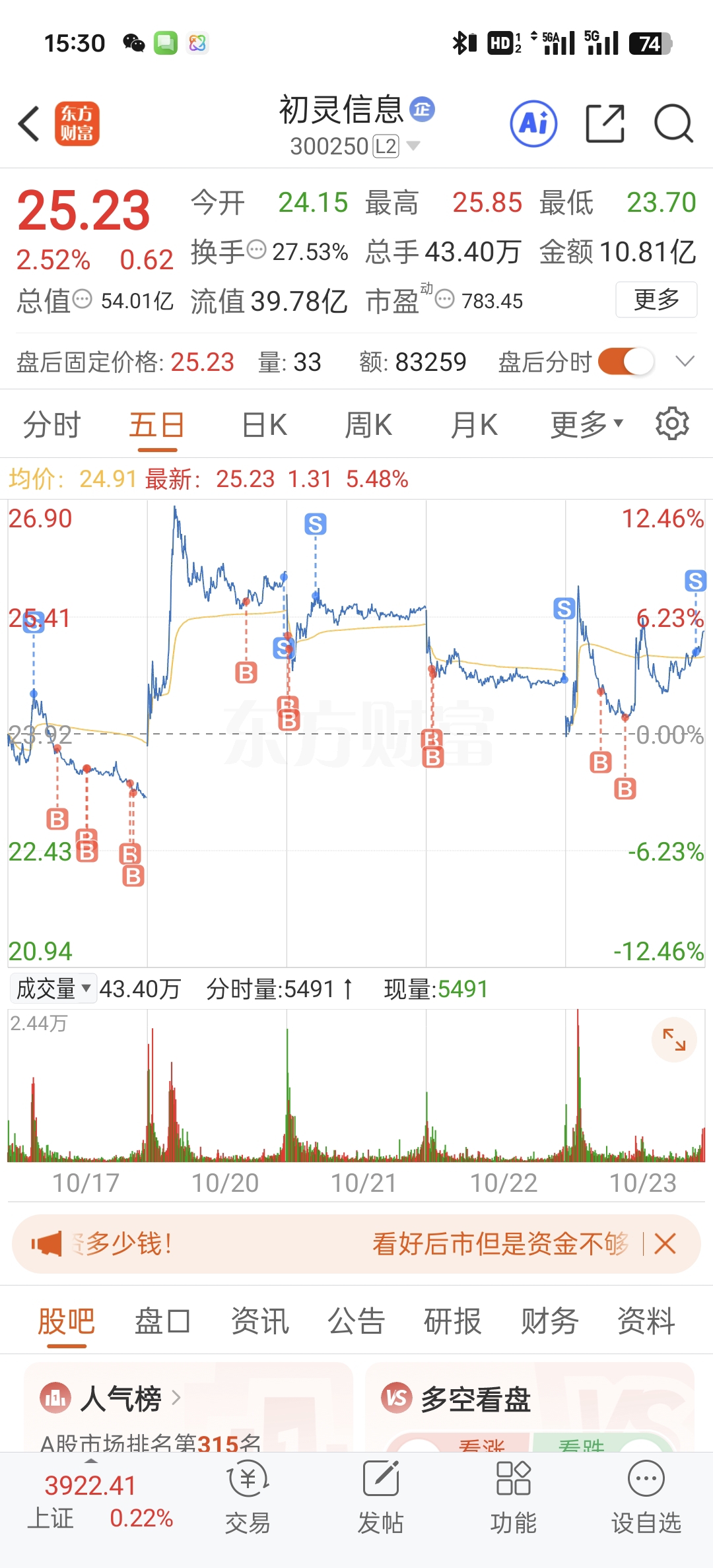 $初灵信息(SZ300250)$ 我是不会走的,敢跌我就敢买,本仓不变,波动就做T,低买高卖,不高卖再低买是因为怕卖飞,首先锁定仓位,再小资金拉成本。主力玩儿的什么心思,包括股吧里有些人发的有些东西,真假要有自己的判断。庄家也不要那么吝啬,众人拾柴火焰高,大家好才是真的好。