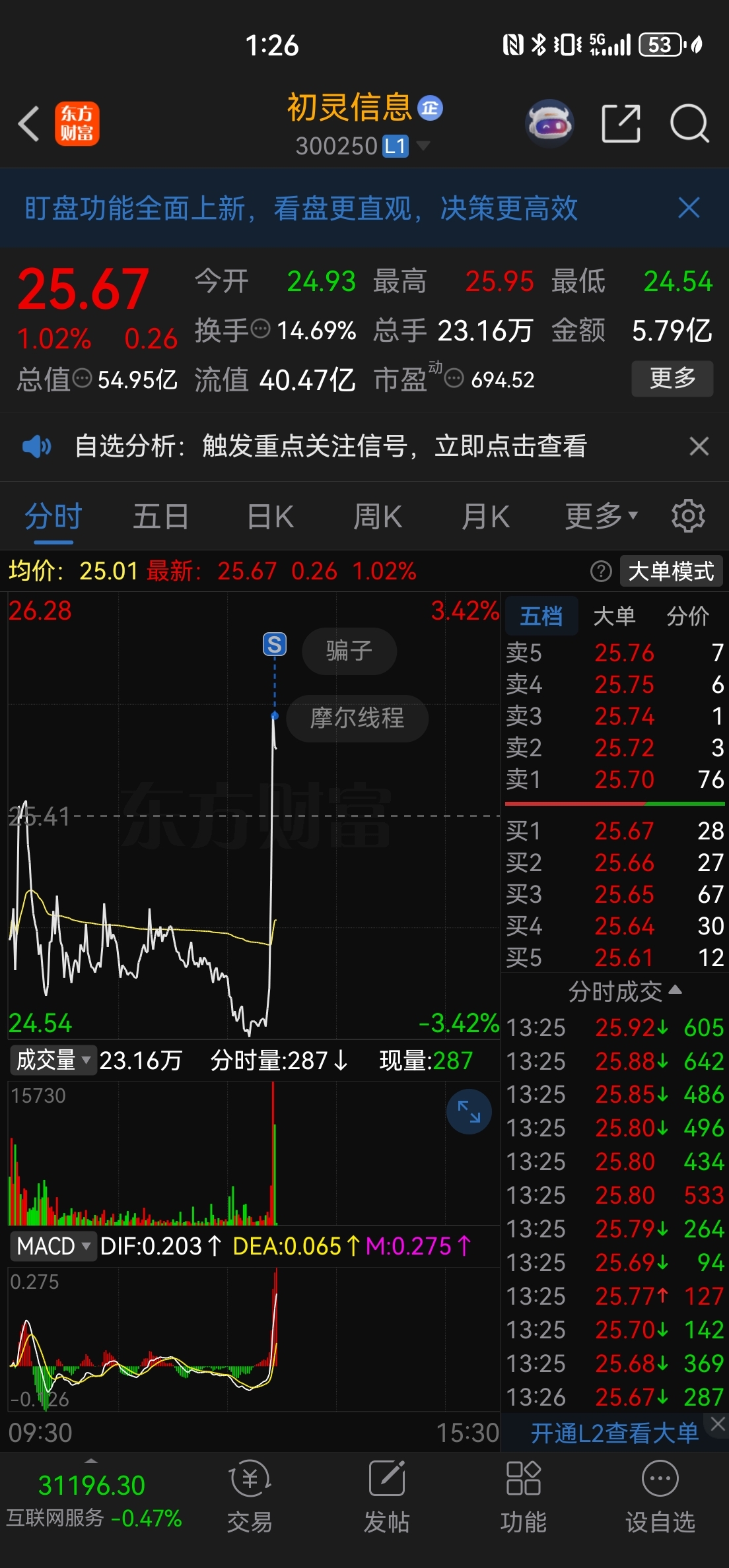 $初灵信息(SZ300250)$ 马乐割笔,让你诱多,让你拉升。