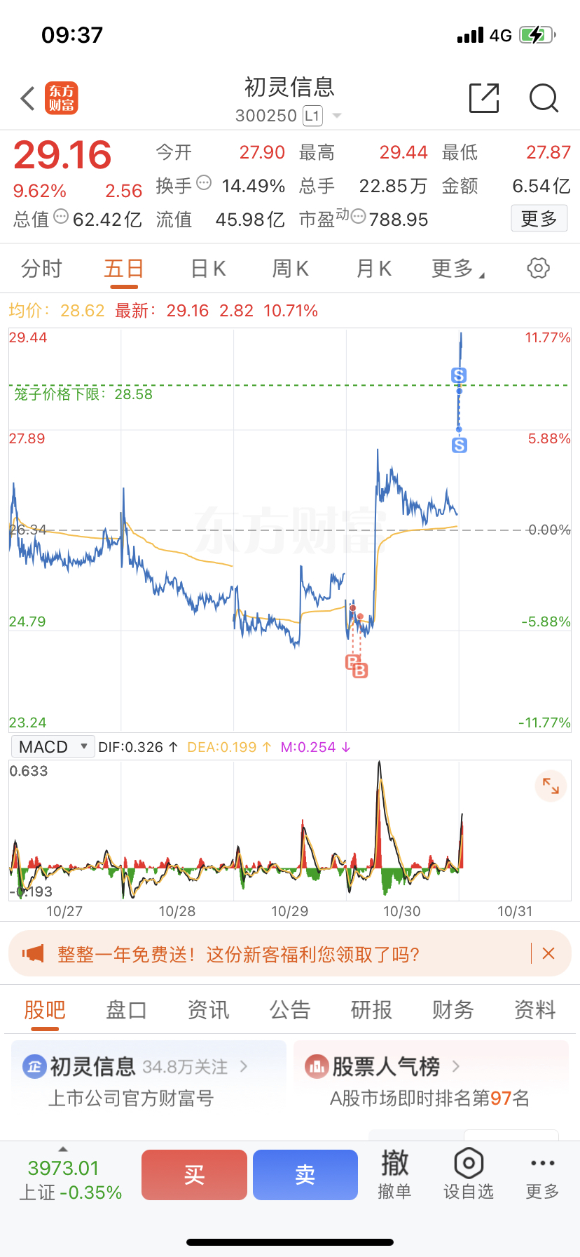 $初灵信息(SZ300250)$ 谢谢主力大哥,先走一半