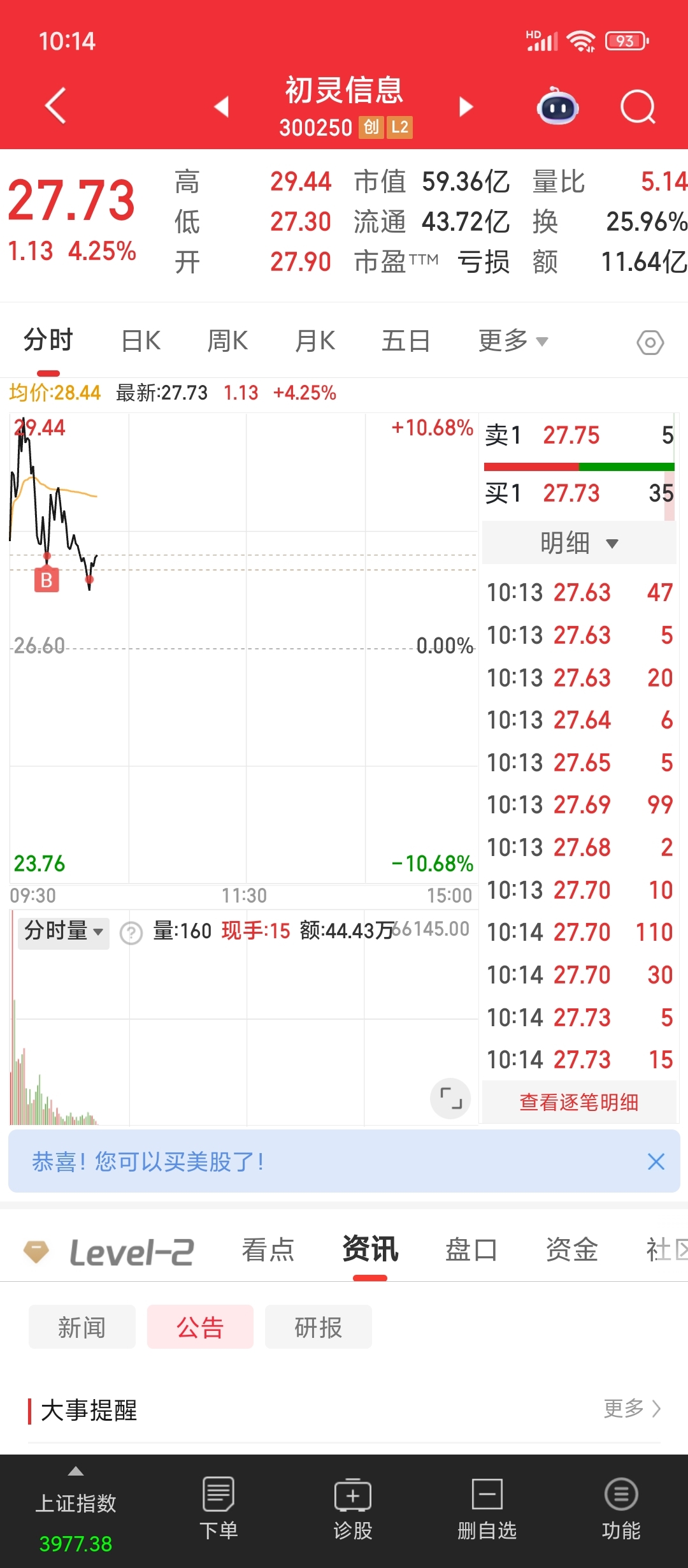 记录一下今天的情况!吃面!周一看反包!今天突破,受盘面影响,依然看好!希望下周好