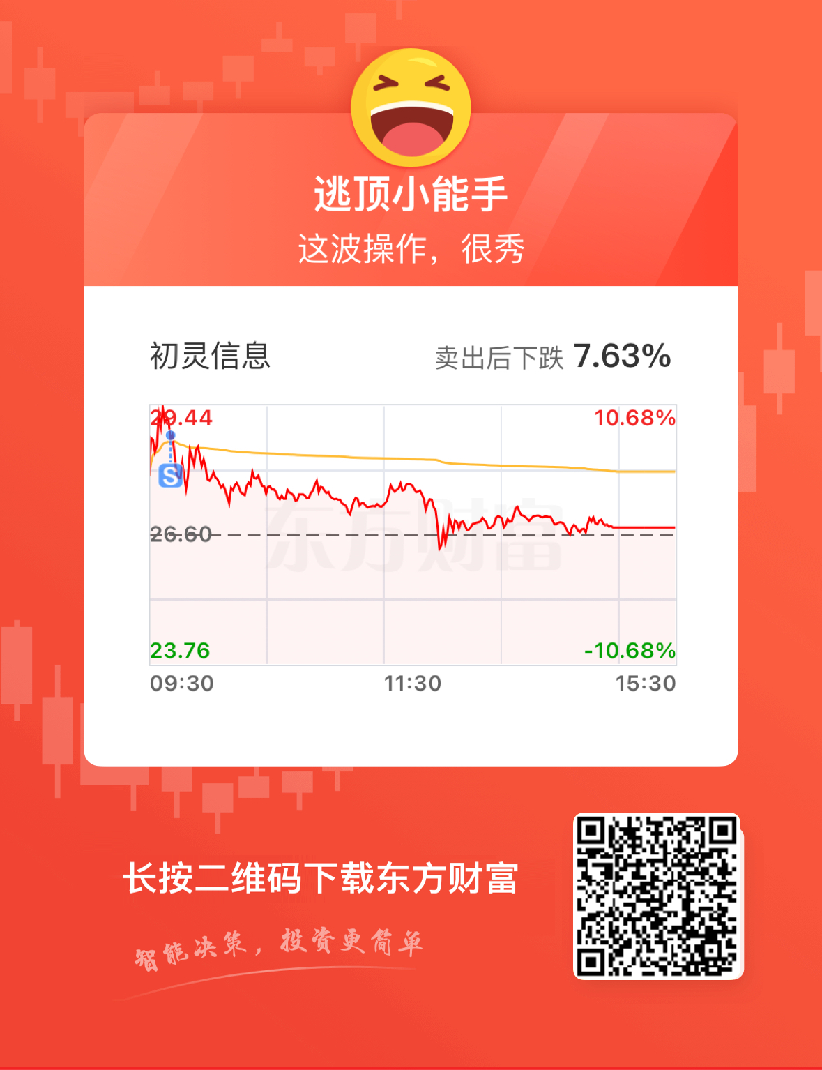 $初灵信息(SZ300250)$ 只剩一百股底仓观察。