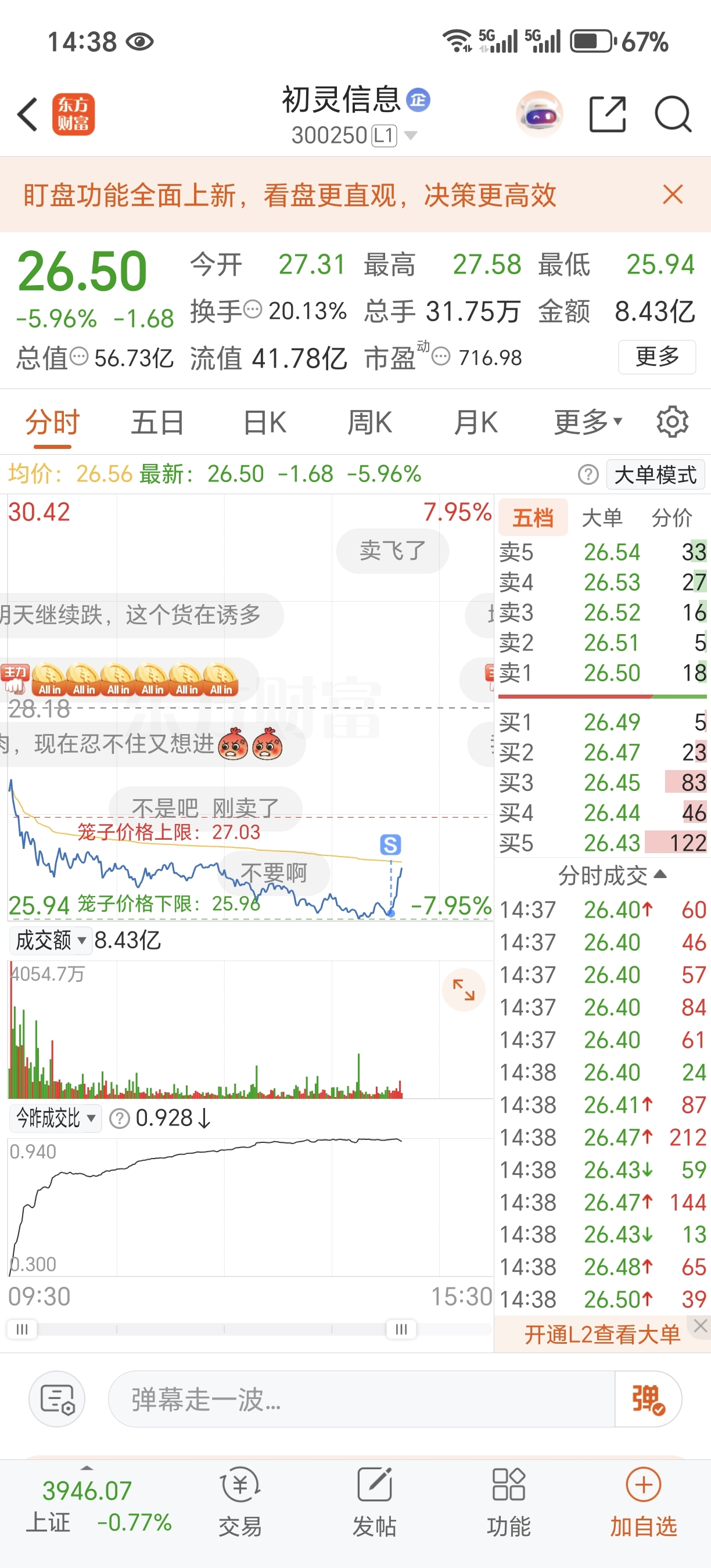 $初灵信息(SZ300250)$ 恶心,一卖就拉