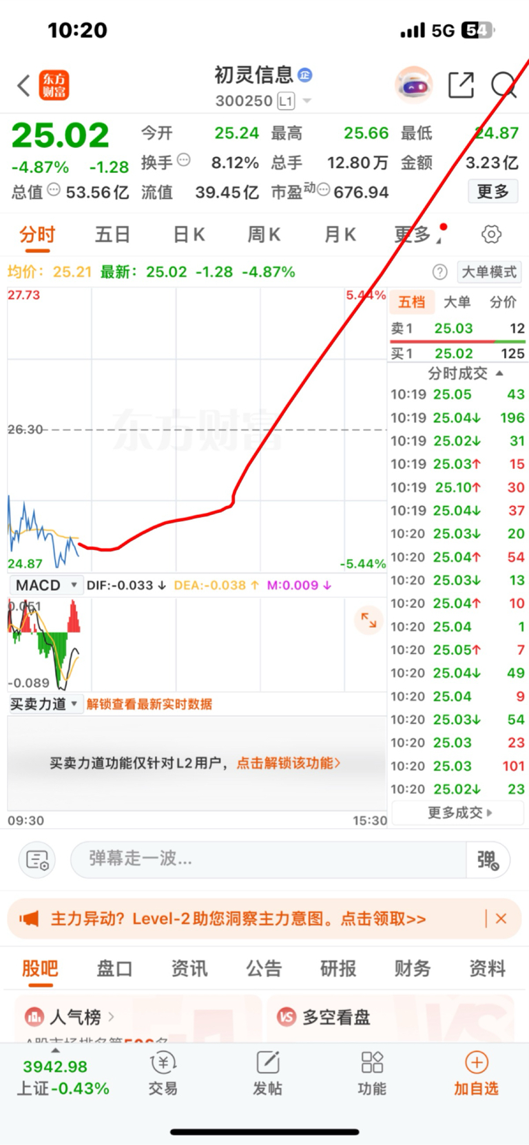 $初灵信息(SZ300250)$ 一会怎么走我说的草