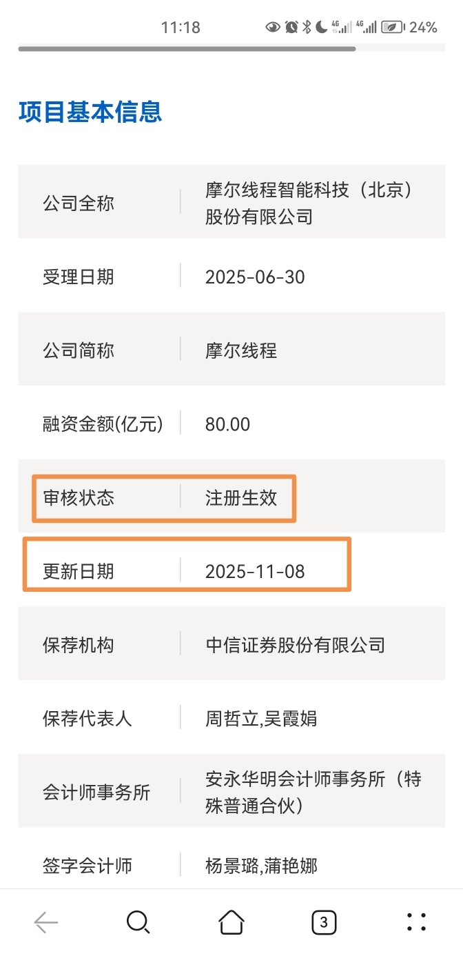 趁摩尔线程上市前夕来一波,下周应该会发行申购