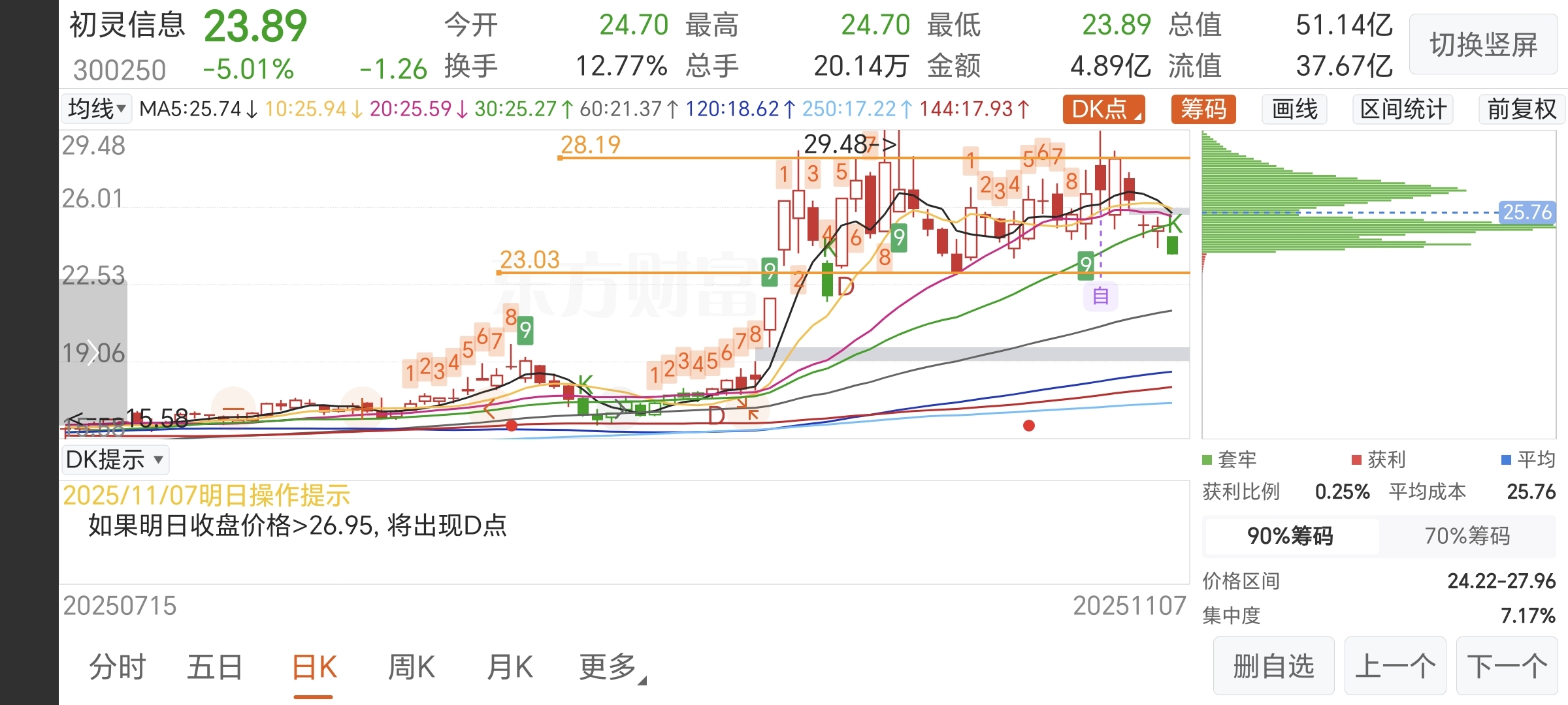$初灵信息(SZ300250)$ 3个点就到箱体底部了,箱体一破就要到60日线了