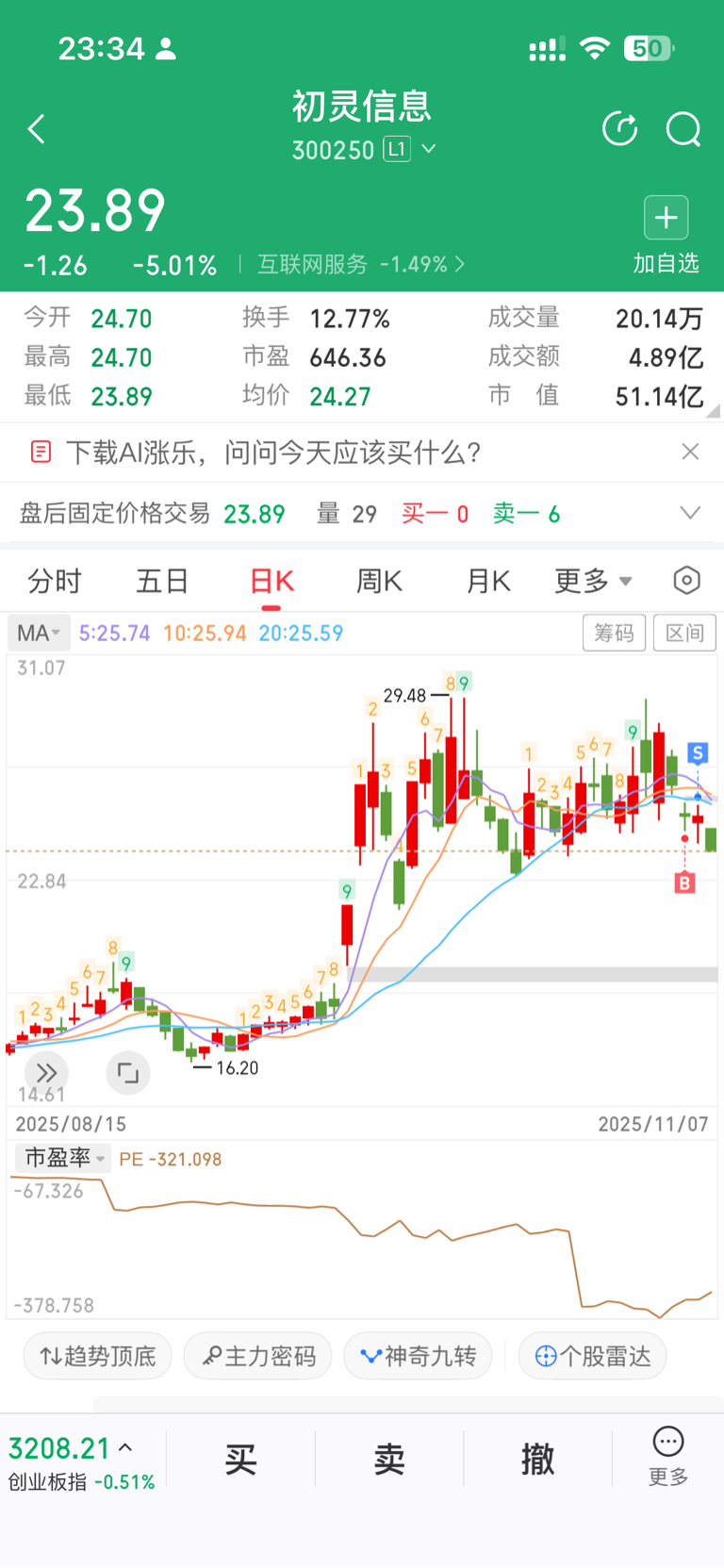 $初灵信息(SZ300250)$ 不及预期,果断卖,挣2000跑了