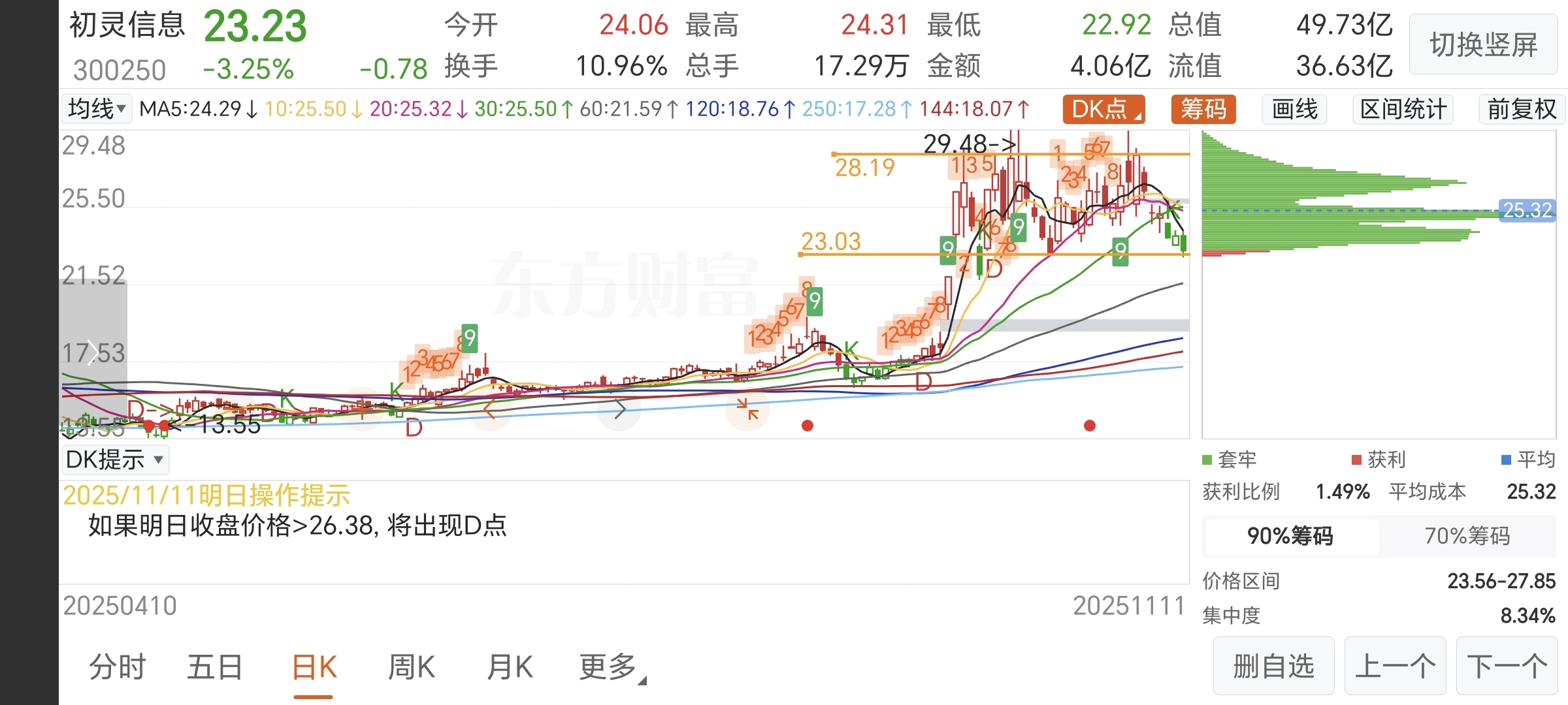 $初灵信息(SZ300250)$ 明天就知道这个高位震荡平台是否有效了,大家觉得还能区间整理吗