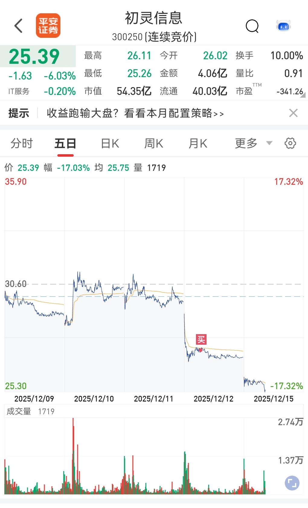 $初灵信息(SZ300250)$ 老子信念坚定,蹲到盘尾