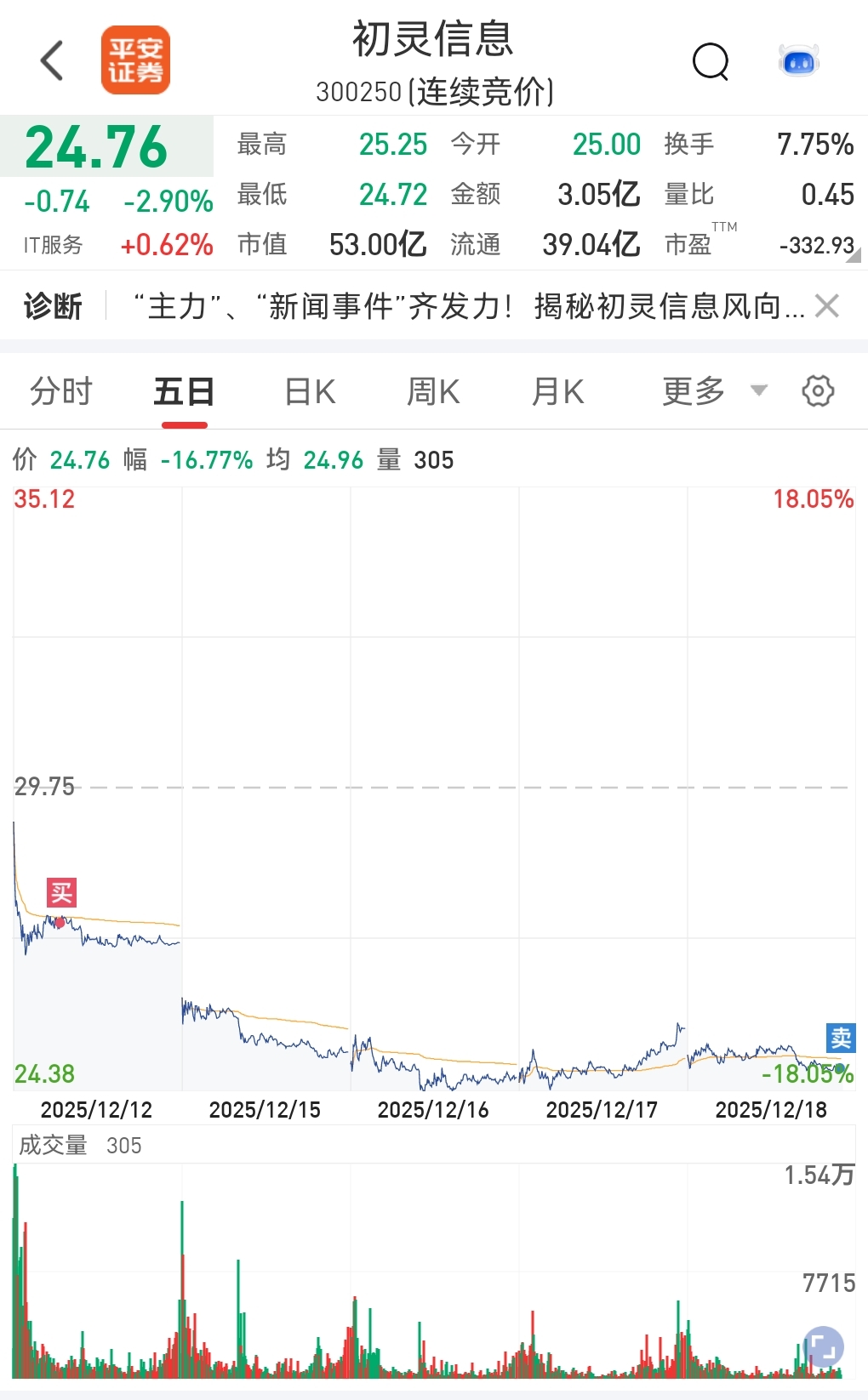 $初灵信息(SZ300250)$ 割肉跑了,明天涨停板稳了。。。