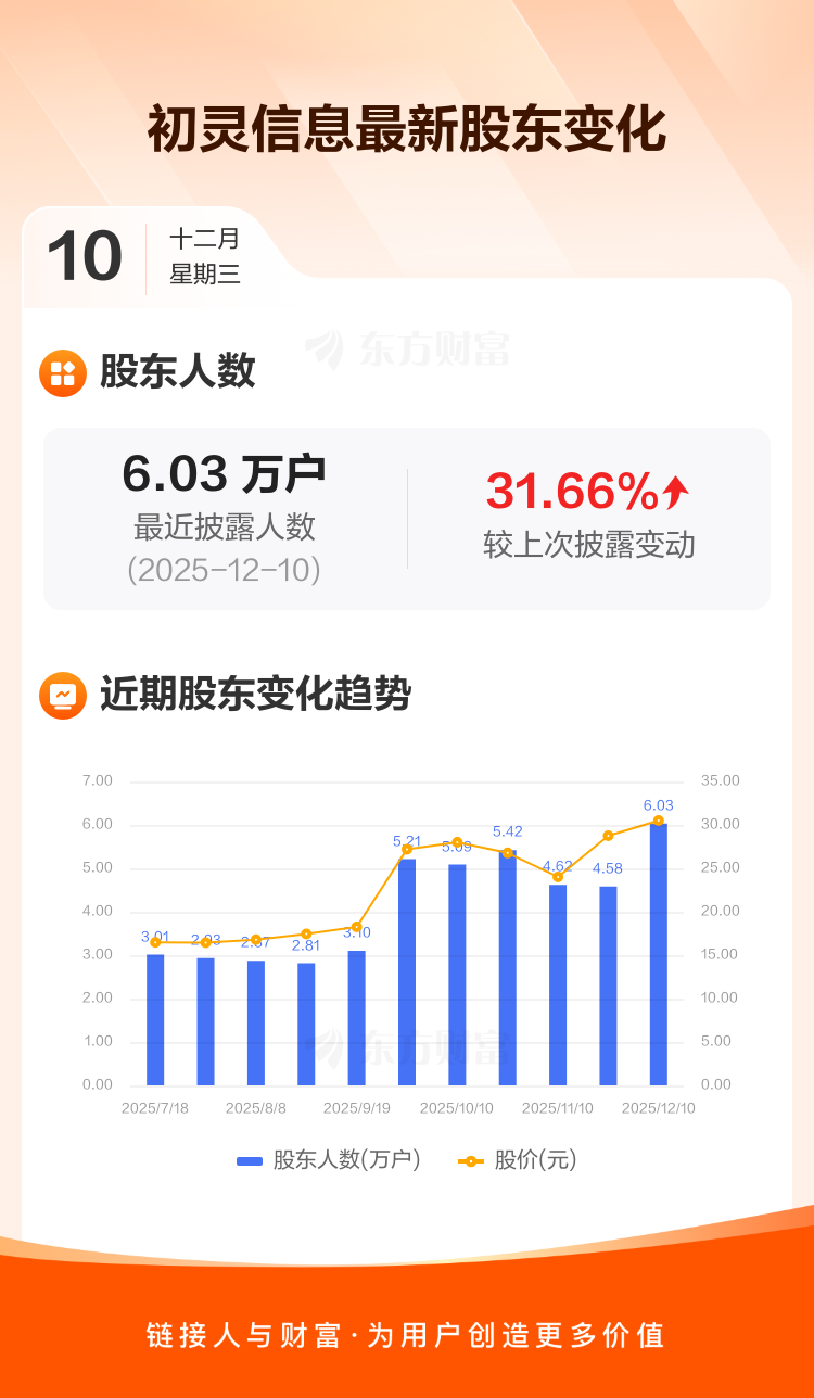 初灵信息:截至12月10日最新股东户数6.03万户,较上期增加31.66%