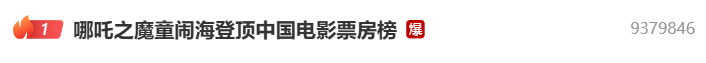 随后#哪吒之魔童闹海登顶中国电影票房榜#冲上热搜第一,话题后面还标了一个“爆”。
