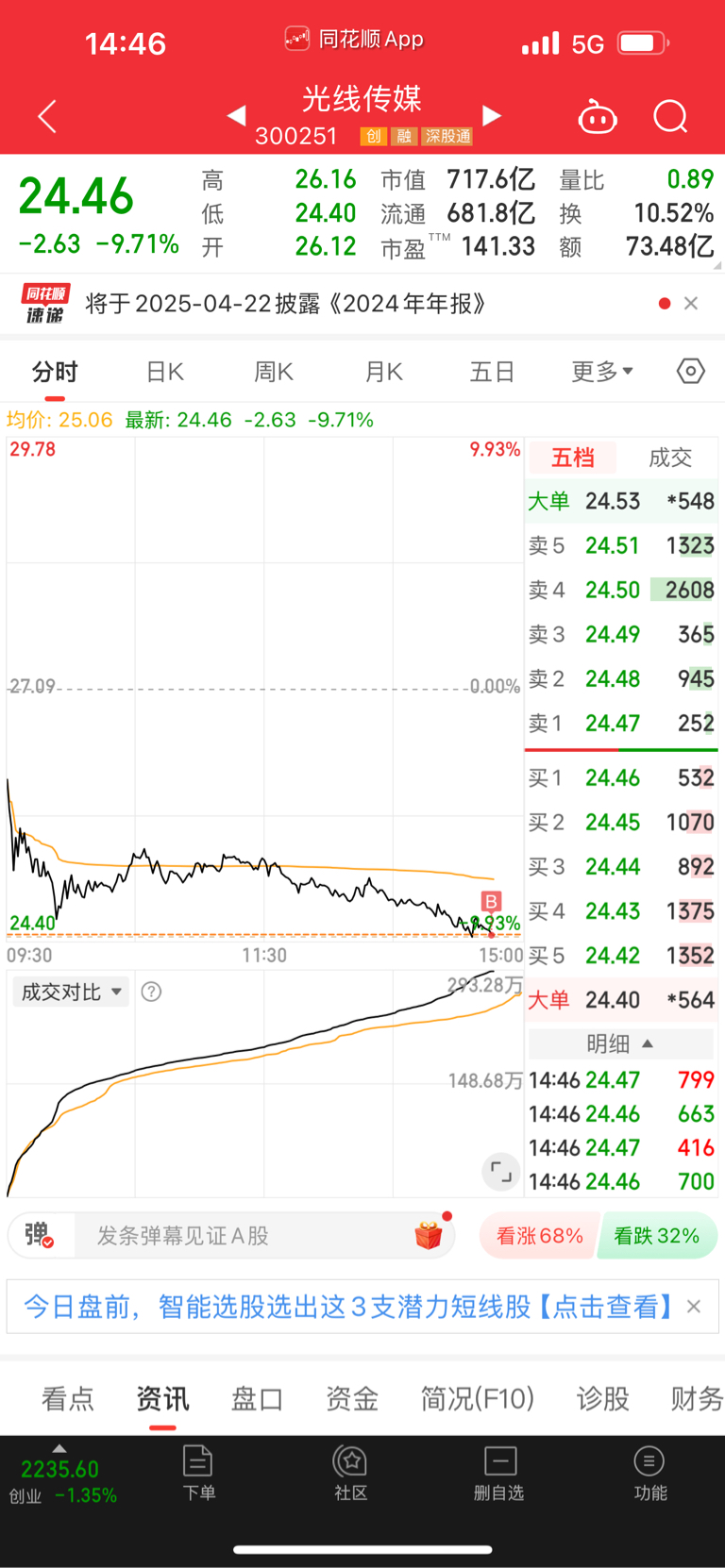 $光线传媒(SZ300251)$ 啥你们40成本? 球砸死