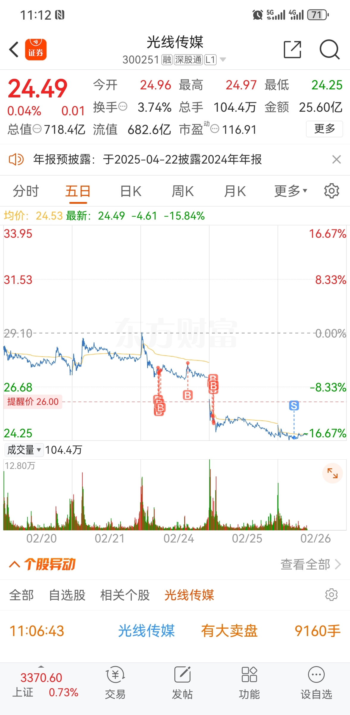 $光线传媒(SZ300251)$ 亏了十来万,认输走人,等哈涨停了喊我,我好拍下大腿