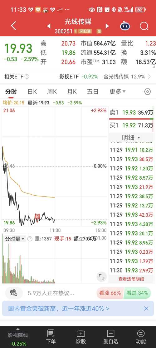 $光线传媒(SZ300251)$ 光线传媒,我又来了,第一波操作平均撤退价27.36,于2月14日全部清仓,属于晚上车且提前下车的,清仓价和巅峰股价相差14.32元。我是清仓后才去看的哪吒电影,萝卜白菜各有所爱,总之我认为整体很好,绝对是国产动画片重大里程碑,希望国产动画片越做越好。哪吒周边花了一千多,主要是小孩子还是喜欢,盲盒、卡片、贴纸、挂件、发箍、弹力球等等,全部买了个遍。这次上车成本价22,开盘犹豫了,盘中就果断追了。同花顺实时热度前三,东方财富热度也是前50。