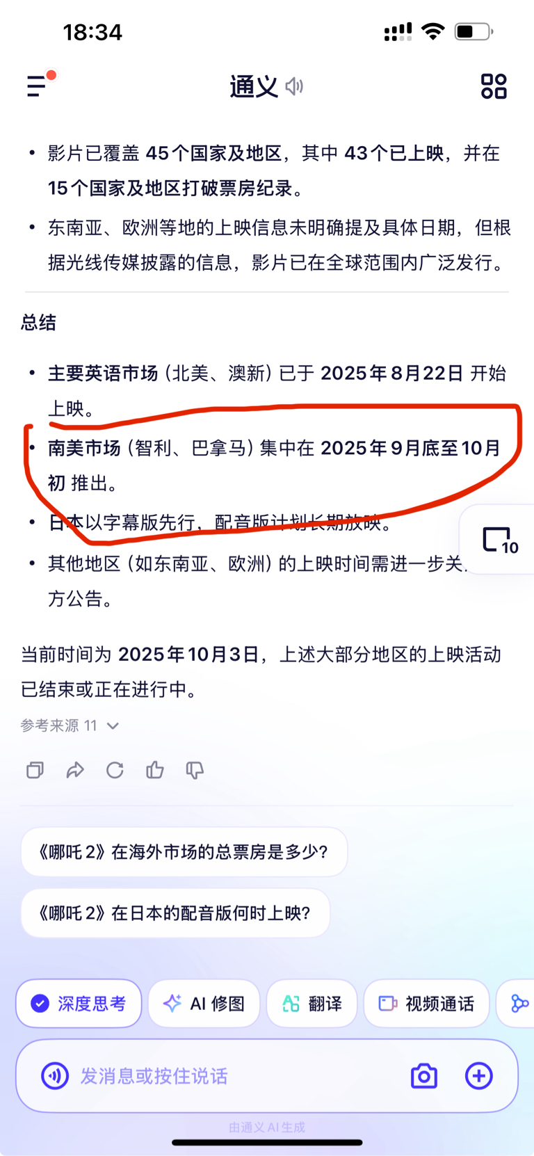 $光线传媒(SZ300251)$ 哪吒2正式开始在南美洲上映