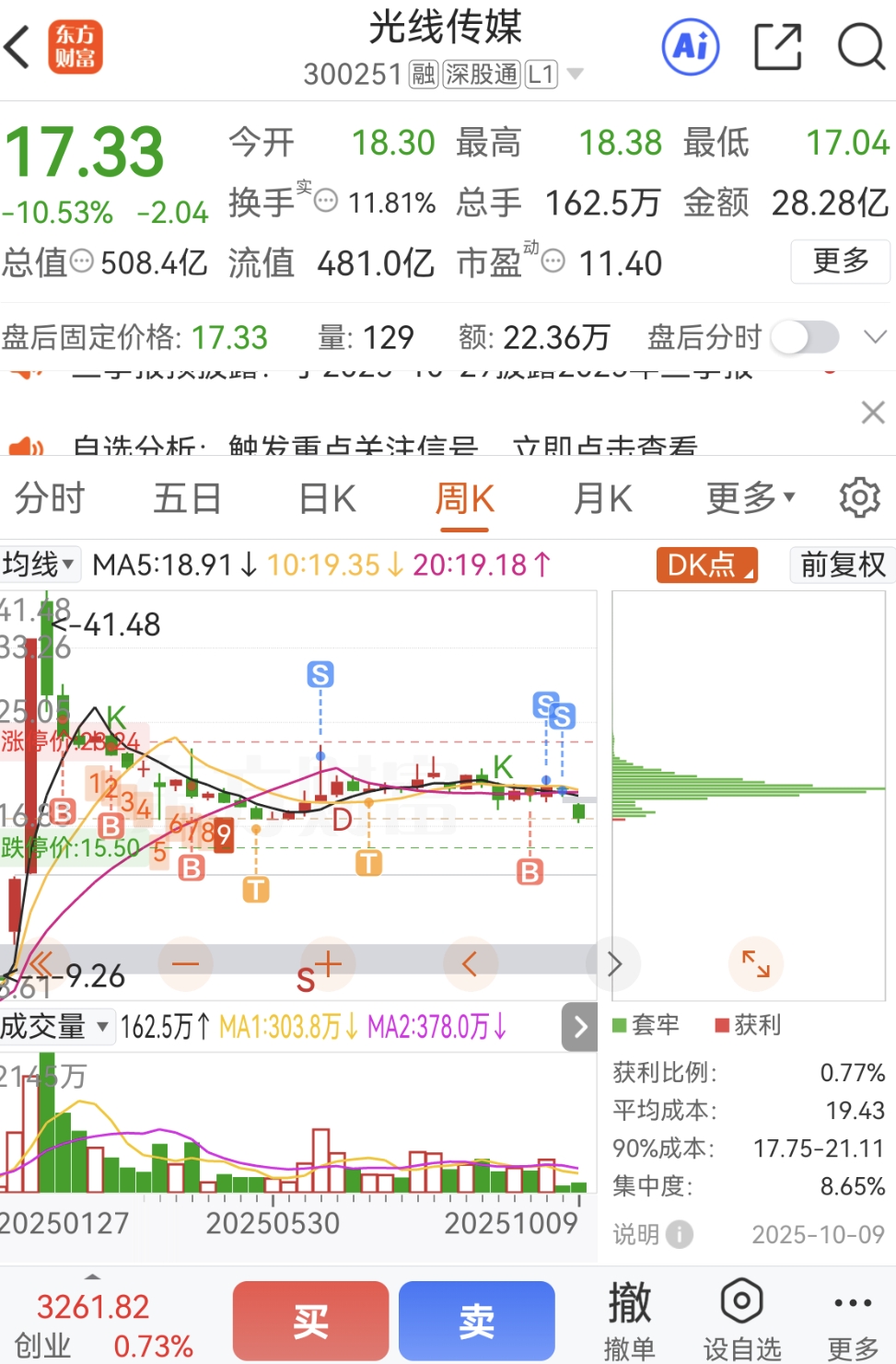 $光线传媒(SZ300251)$ 拿了大半年,亏了20个点,2万块钱,幸亏节前割肉了,中间有一次涨停没卖真的后悔死了