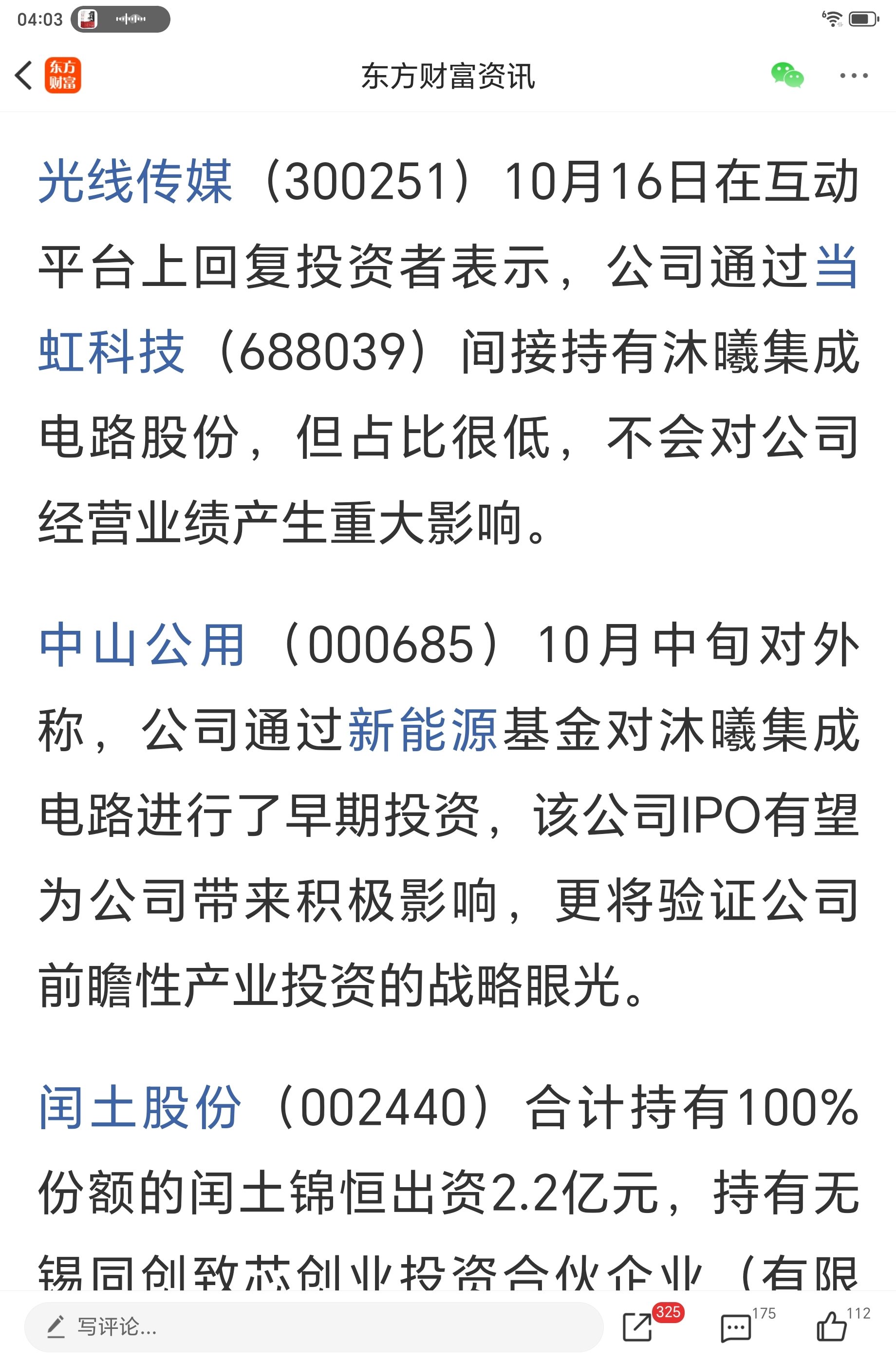 $光线传媒(SZ300251)$ 比例很低!持有沐曦科技