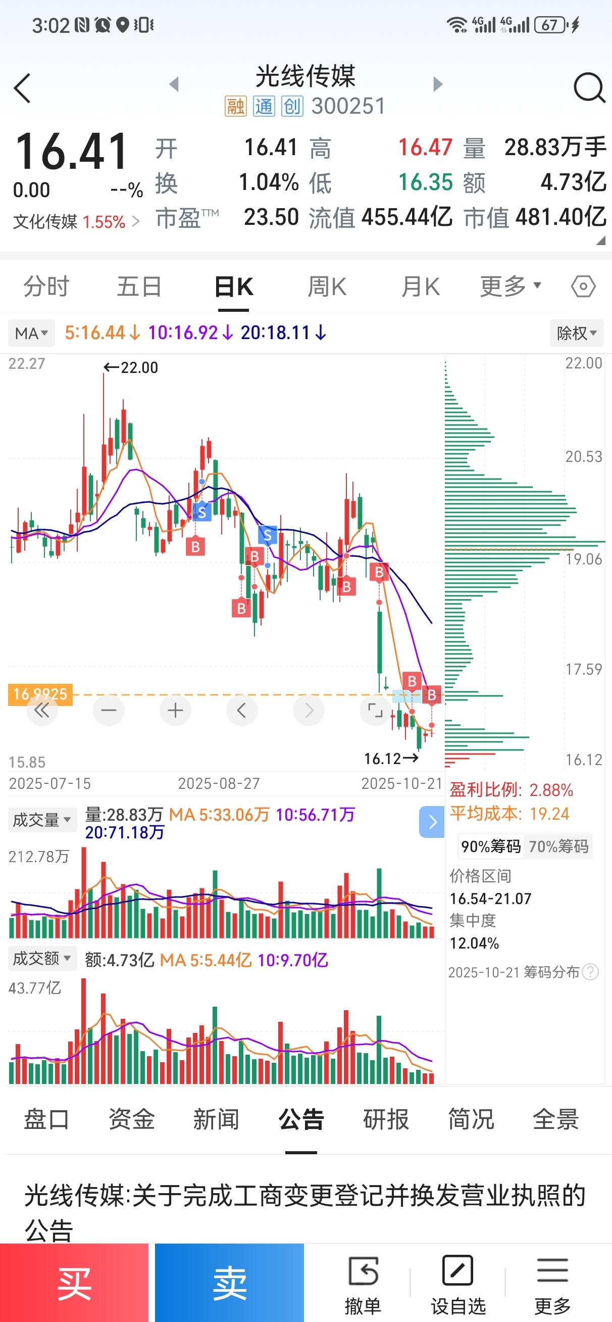 $光线传媒(SZ300251)$ 集合竞价湖北广电涨停板,整个文化传媒都涨3%左右,集合竞价买的你,你收盘给我来个开盘价,一天玩了个0,还搭上手续费,补了一路,本以为到底了,没想到还有地下室。补了一路重仓等你回本