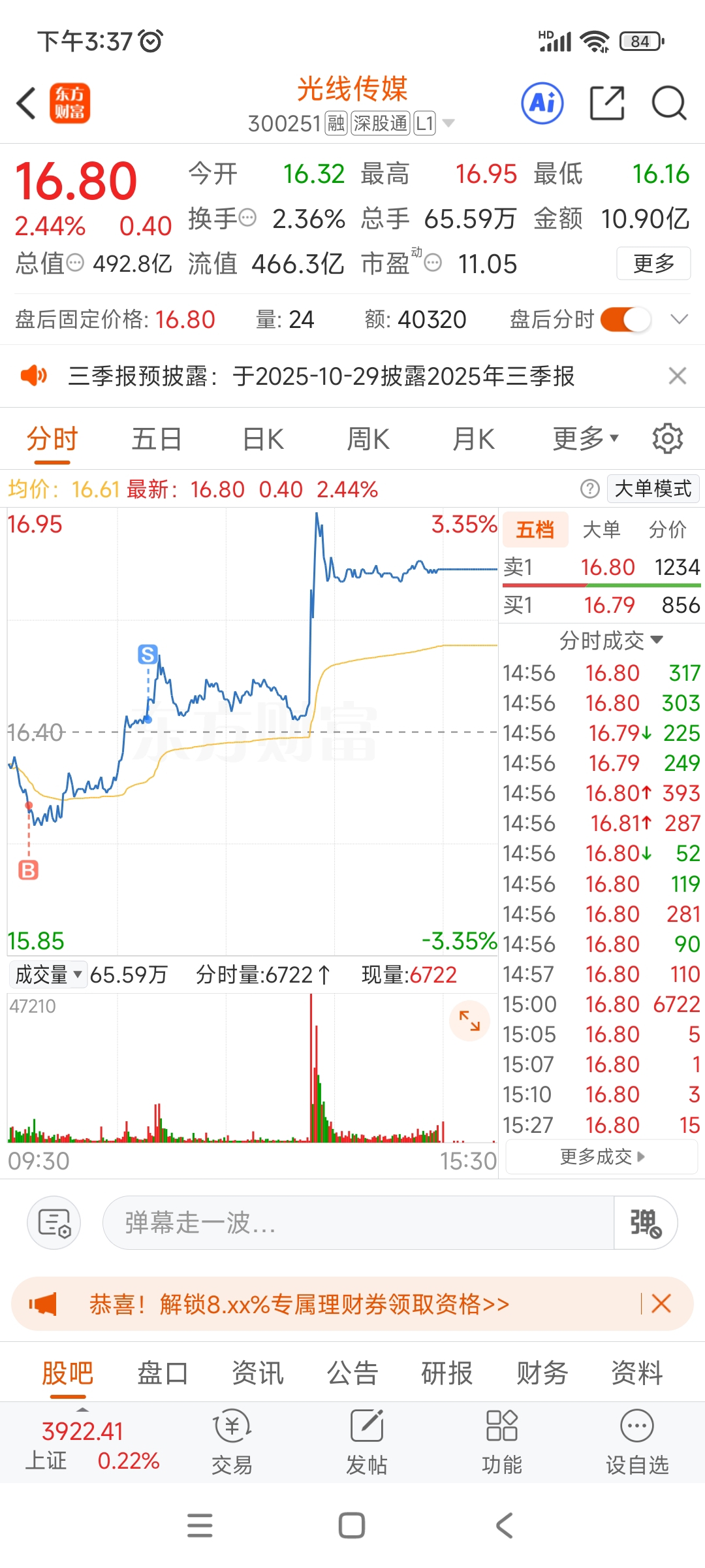 $光线传媒(SZ300251)$ 26.99时以为它是龙头就买了,结果它是聋偷,掩耳盗铃的