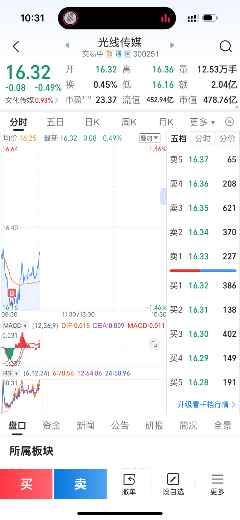 $光线传媒(SZ300251)$ 昨天16.17买的本来想今天17.17卖的。。。哎