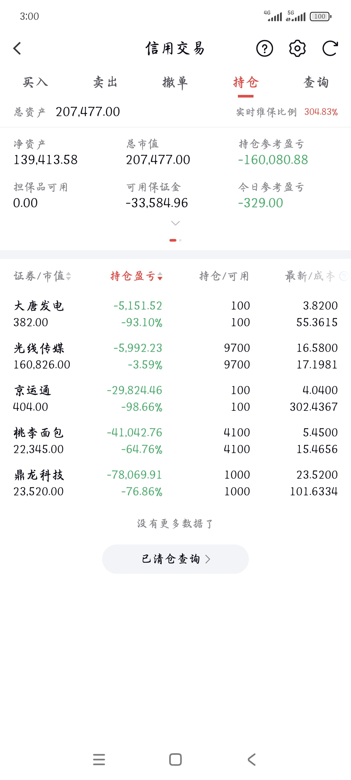 万幸啊!融资的50万没有加进来,没有放进账户里。要如果说加进来亏的更不成样子了。