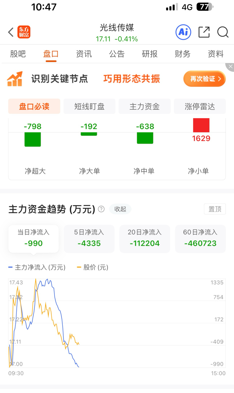 $光线传媒(SZ300251)$ 主力一直出货