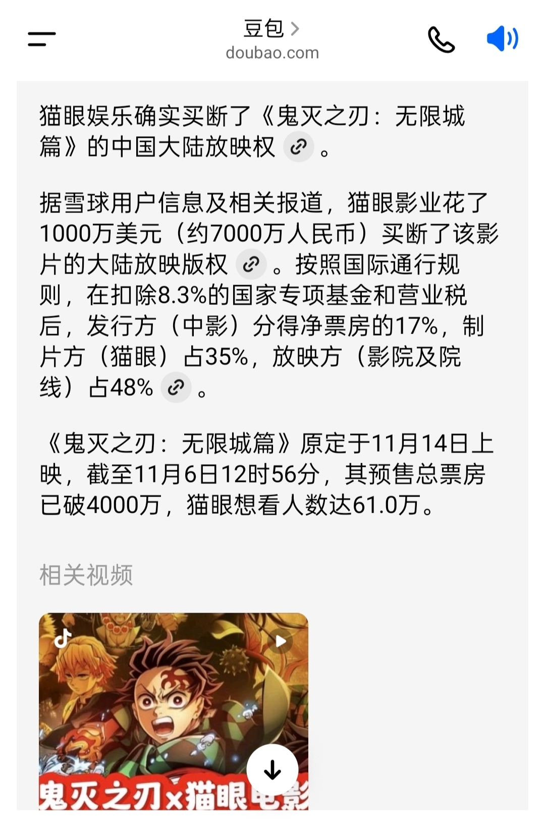 $光线传媒(SZ300251)$ 猫眼分成票房35% 光线间接分成票房大约15%