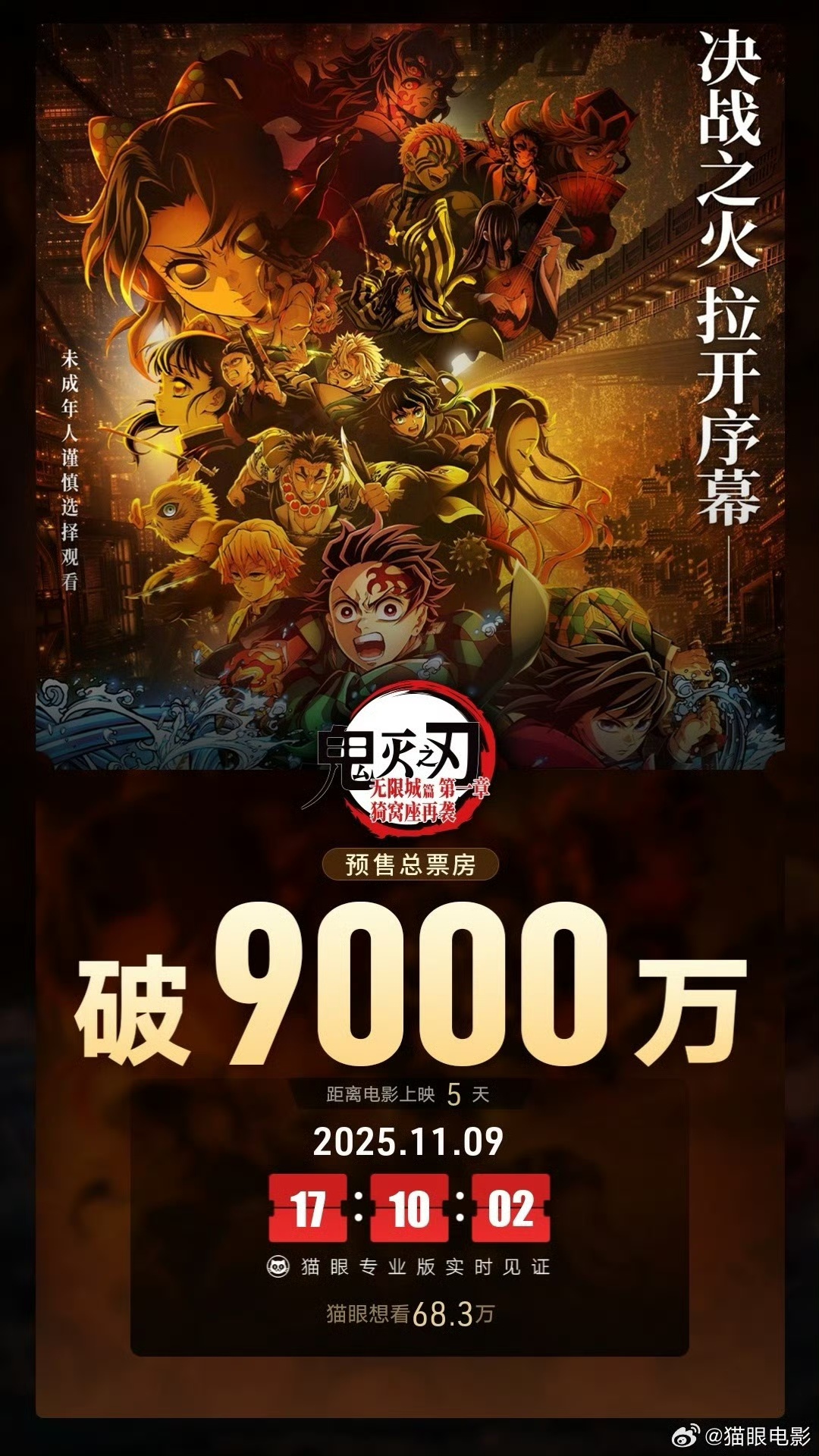 $光线传媒(SZ300251)$ 光线传媒参股的猫眼买断的电影预售票房已经9000万了,预测最终预售1.3亿,通常最后一天预售最高