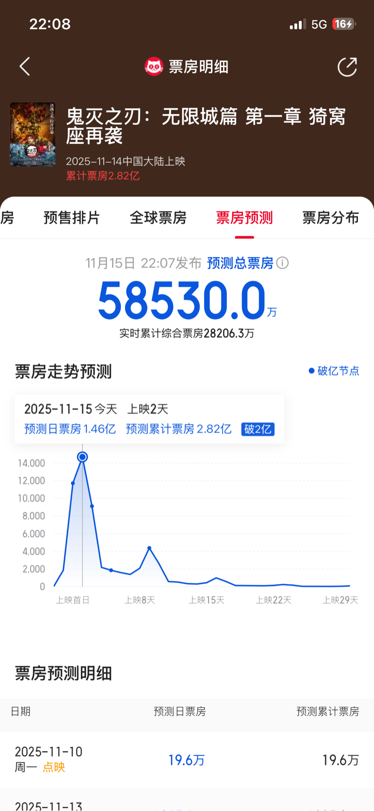 $光线传媒(SZ300251)$ 鬼灭的票房预测还在降,现在连6亿都没有